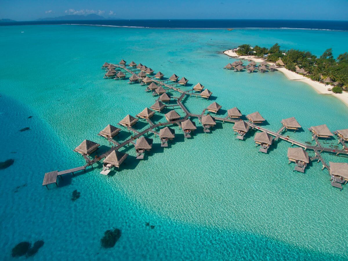 En las paradisíacas playas de Bora Bora, el hotel InterContinental Le Moana tiene vistas impresionantes al mar y a las montañas cercanas. Este hotel es de los que tiene mayor cantidad de palafitos sobre el mar, con diferentes tamaños y amenidades.