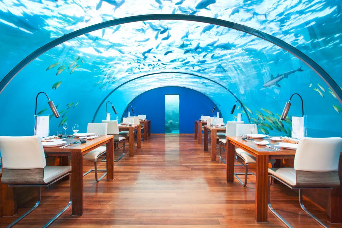 Pero no es lo único que hace al hotel Conrad famoso, pues aquí se construyó el primer restaurante bajo el agua del planeta. ¡Sí! Aquí se puede tener una cena romántica a cinco metros bajo el nivel del mar y con vistas panorámicas a los arrecifes de coral y vida marina.