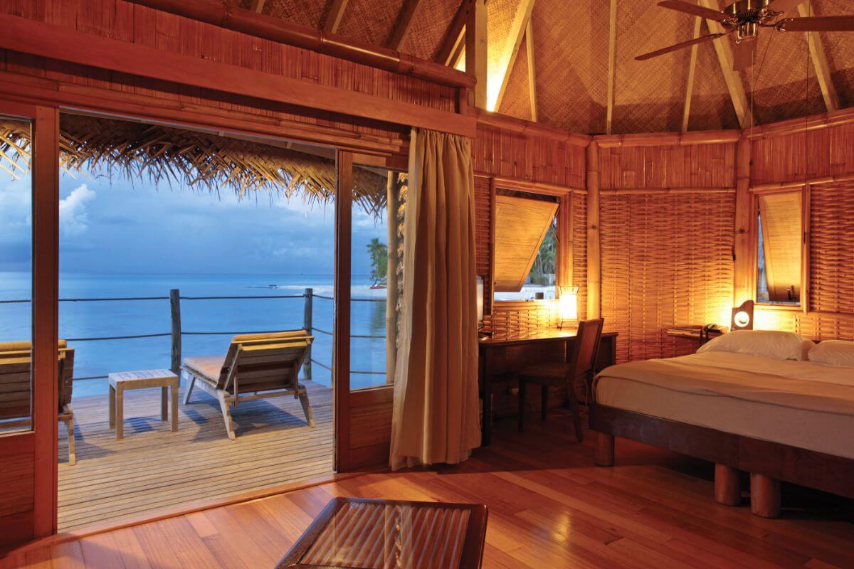 Todos los palafitos están conectados a través de puentes de madera, que también conducen a los restaurantes y el spa de esta sección del hotel. Si dormir sobre el agua, es una experiencia única por sí misma, espera a descubrir los servicios ultra exclusivos que tiene el hotel, incluyendo un asistente que te ayuda a desempacar tu maleta y hasta te consigue el bronceador adecuado para tu tipo de piel.